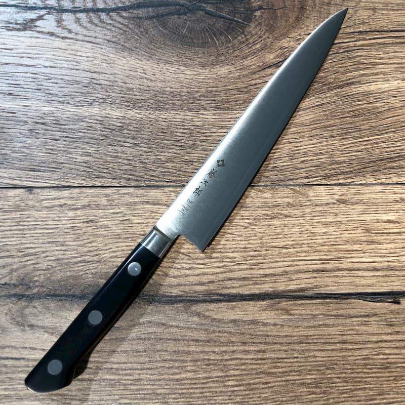 Couteaux filet de sole flexible. Le couteau de base pour travailler le poisson dans nos cuisines occidentales mais très peu répandu dans les gammes de couteaux japonais, et pour cause. Les aciers japonais sont trop durs pour permettre de réaliser des lames flexibles (le poisson s'y travaille avec des yanagiba).