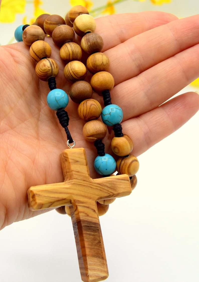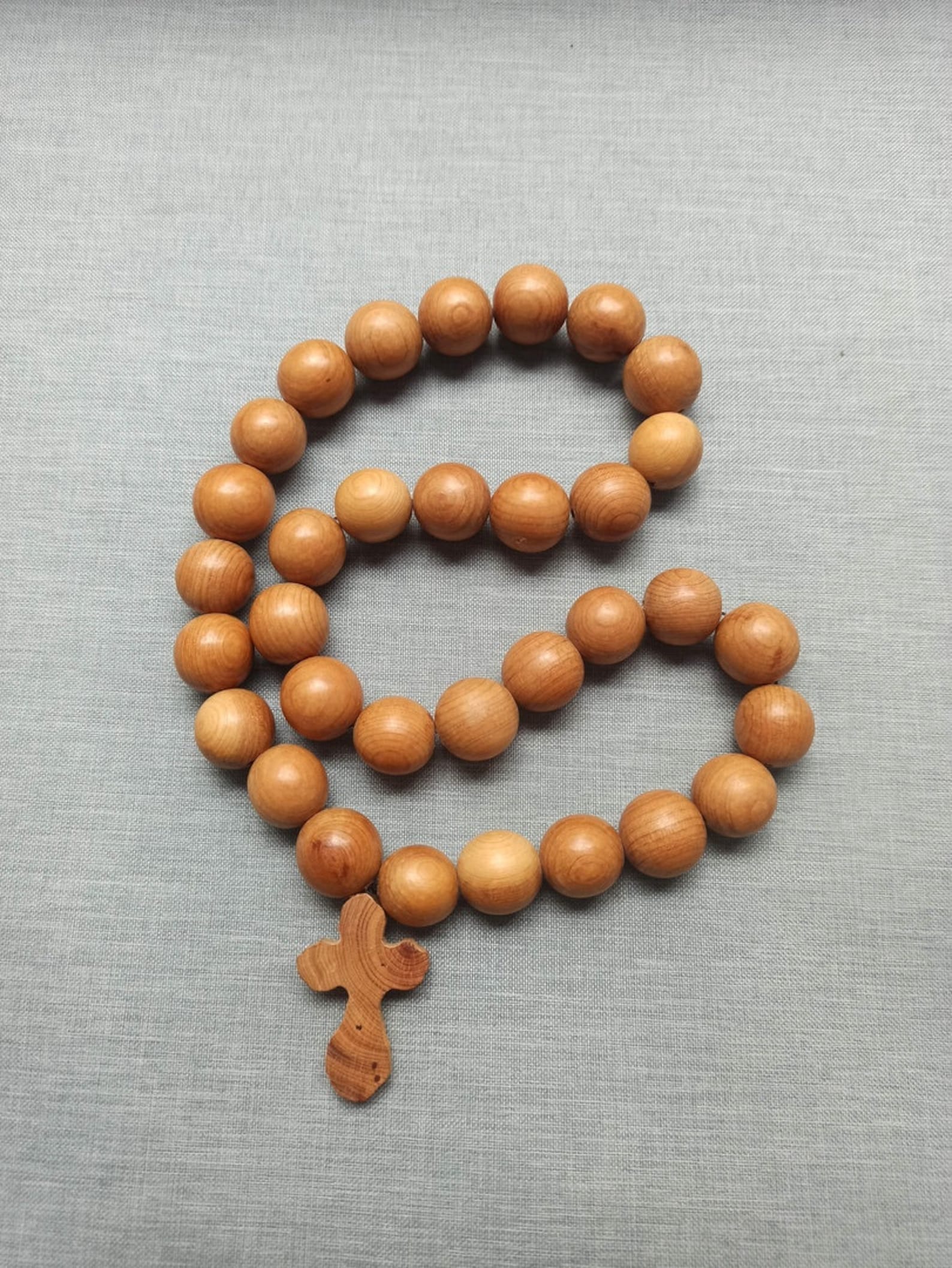 Chapelet sur corde en bois d'olivier fabriqué à Bethléem, 36cm Objets de piété Chapelets