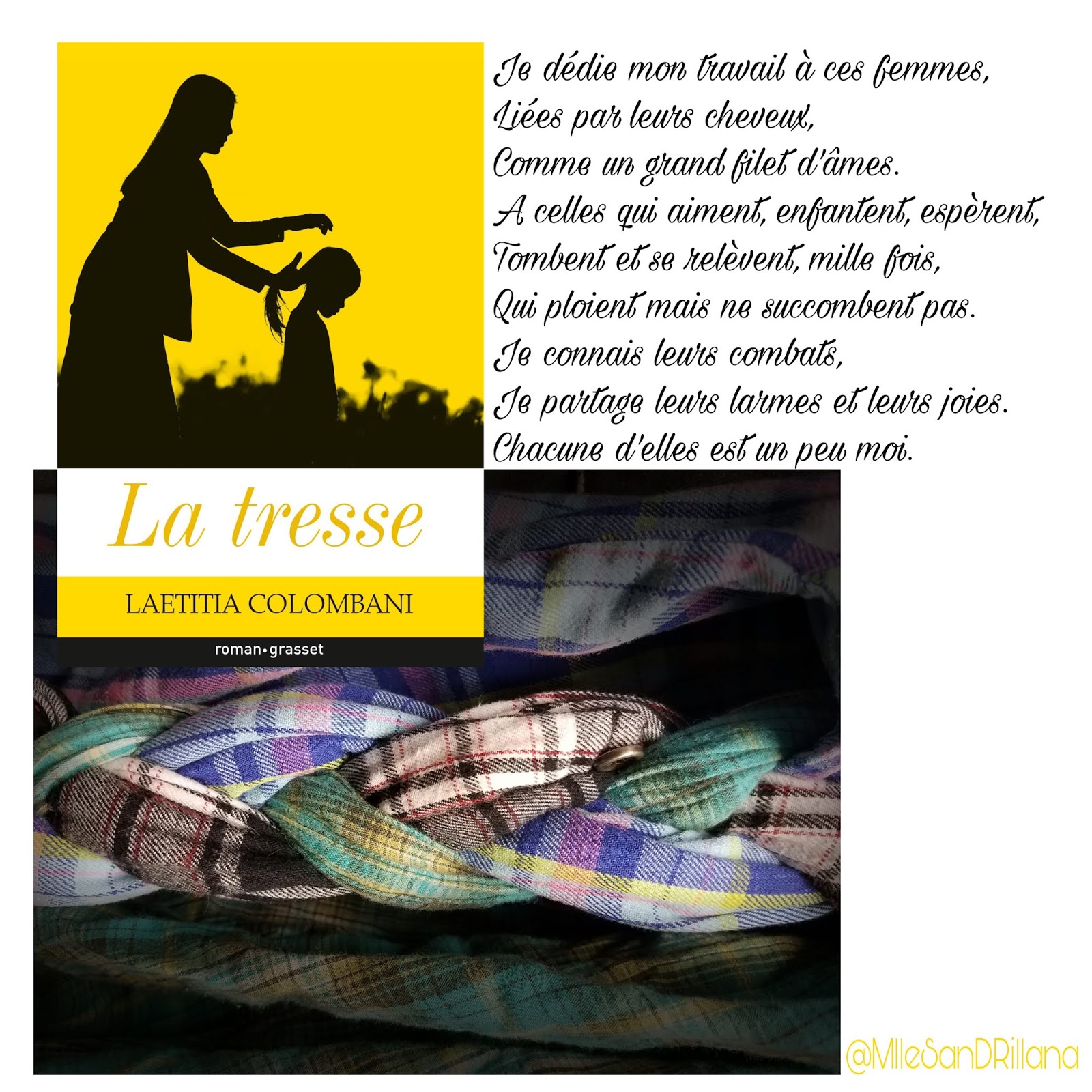 La tresse. Laetitia Colombani. Grasset, May 10, 2017 - Fiction - 224 pages. Trois femmes, trois vies, trois continents. Une même soif de liberté. Inde. Smita est une Intouchable. Elle rêve de voir sa fille échapper à sa condition misérable et entrer à l'école. Sicile.