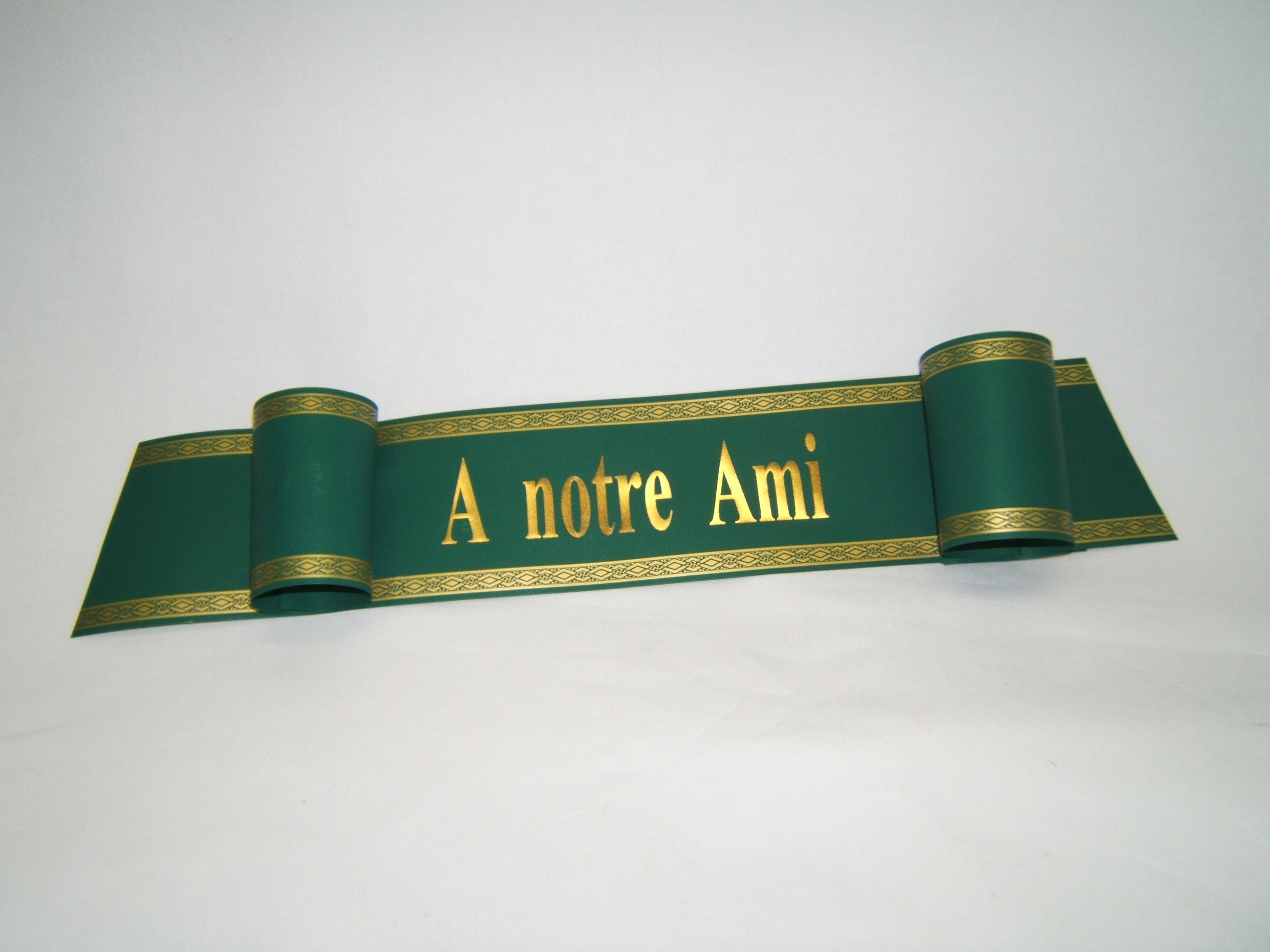 Ruban deuil, inscription sur ruban funéraire, ruban pour gerbe deuil. Florafrance