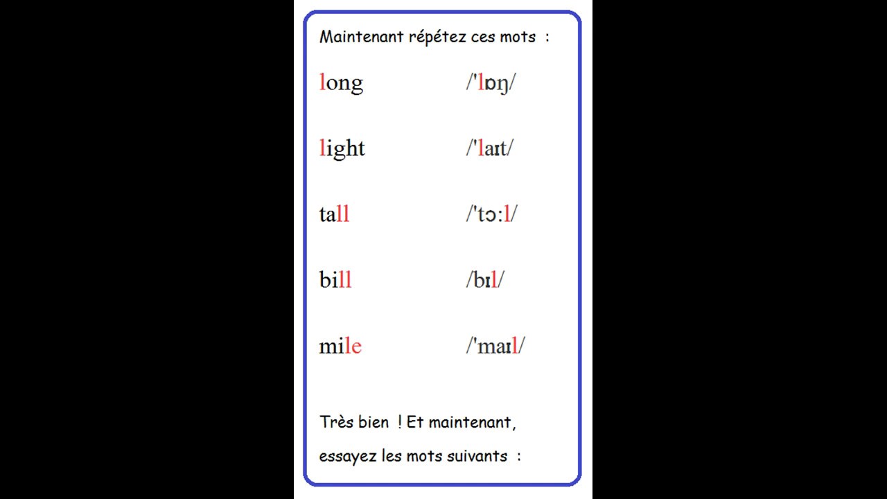 Anglais Prononciation Mode d'emploi 09 La Consonne L YouTube